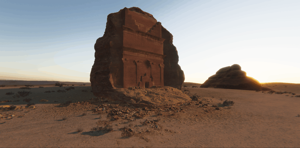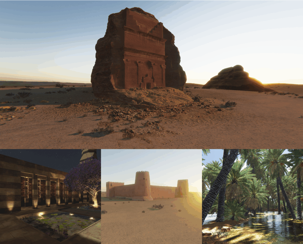 Experience Arabic Heritage is an immersive virtual reality tour recreating several UNESCO World Heritage sites in the Middle East. The project includes virtual experiences of the Tomb of Lihyan, located at Hegra, in Saudi Arabia, featuring monumental tombs with carved facades dating from the 1st century BC to the 1st century AD; the oasis of Al-Ahsa, also in Saudi Arabia, bearing witness to human settlement in the Gulf region from the Neolithic era to the present day; and the Al Zubarah Fort, part of an ancient trading port, it is Qatar’s largest heritage site.